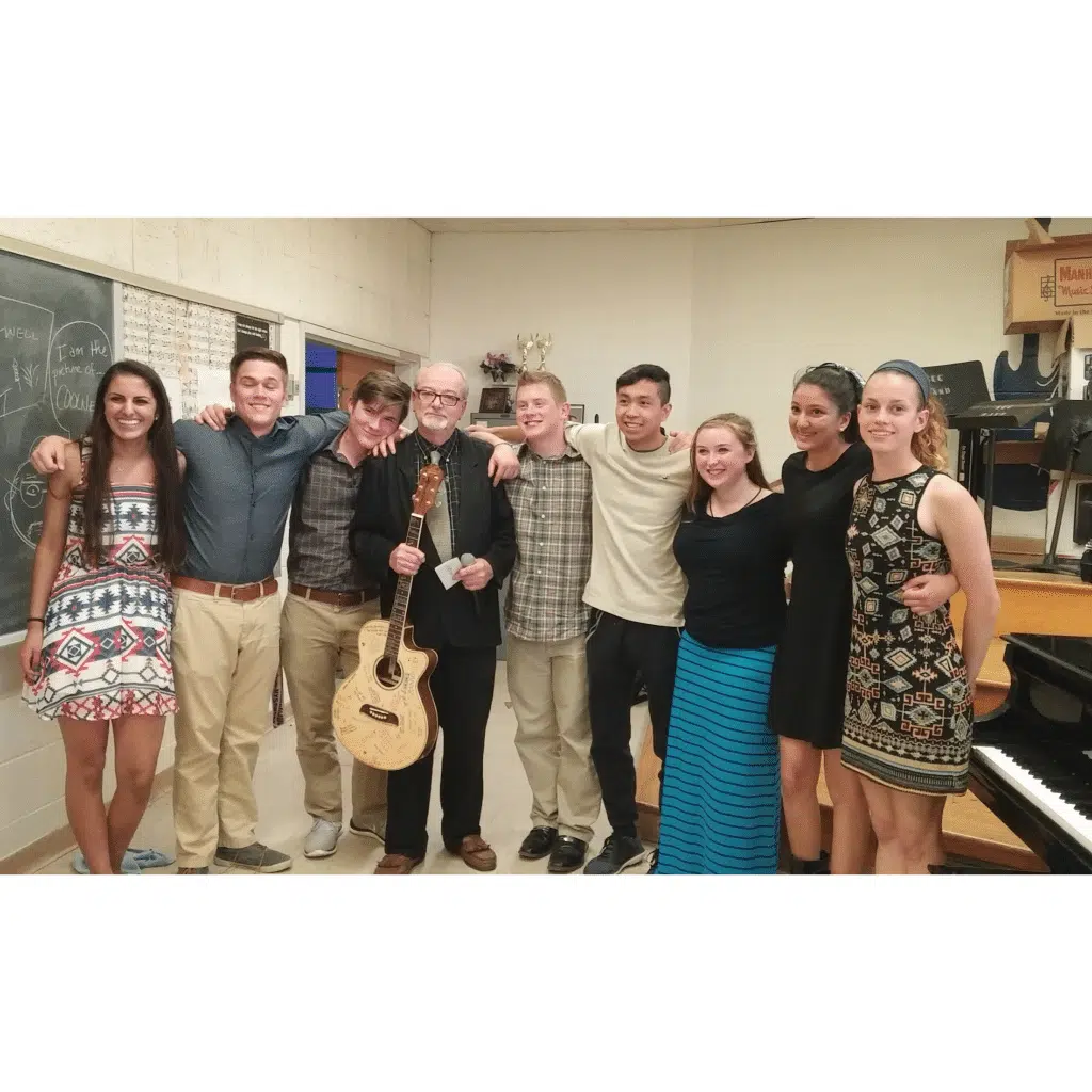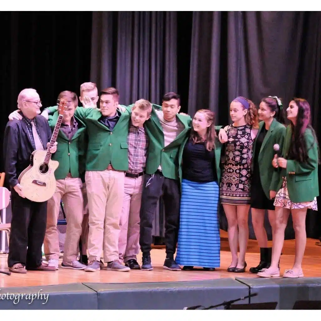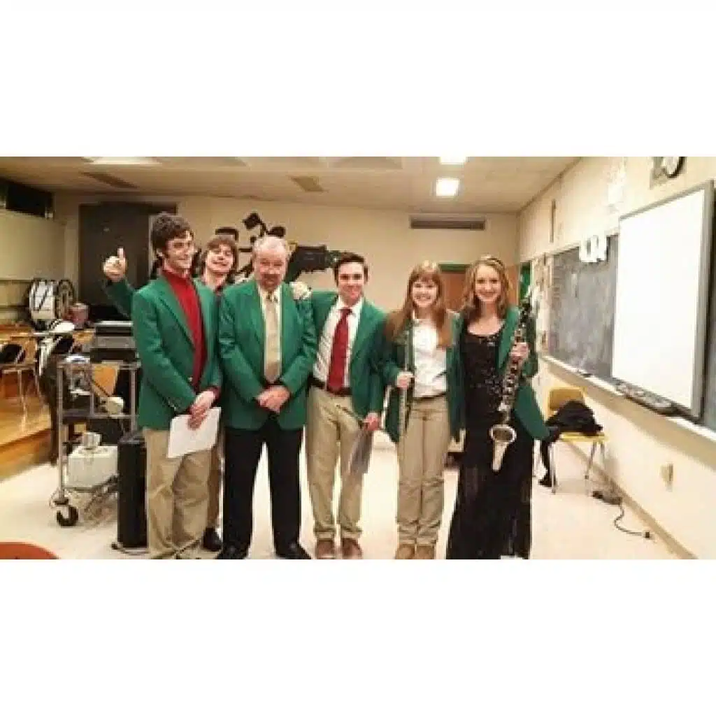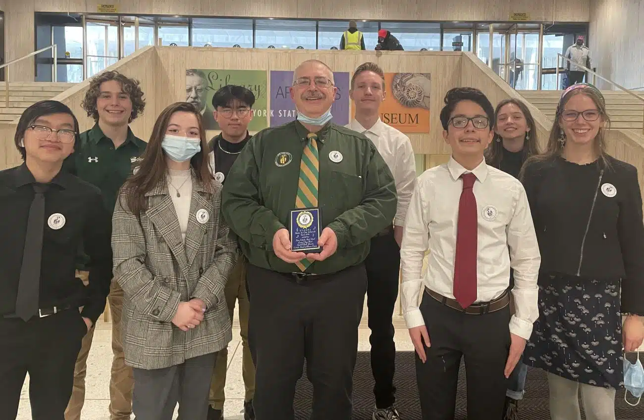Modern Music Ensemble (Stage Band) and Mr. O’Dell with the plaque received from the New York State School Music Association honoring their performance at the Empire State Plaza in Albany, NY; March 23, 2022